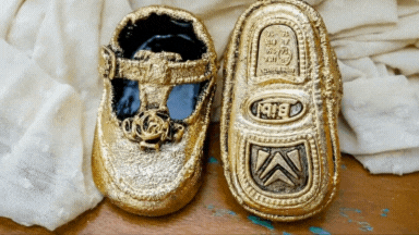 Os primeiros sapatinhos do bebê, que acompanharam seus primeiros passos e os momentos mais preciosos dos seus primeiros dias, ganham uma nova vida como uma miniatura perfeita, feita para guardar memórias e emoções eternas.